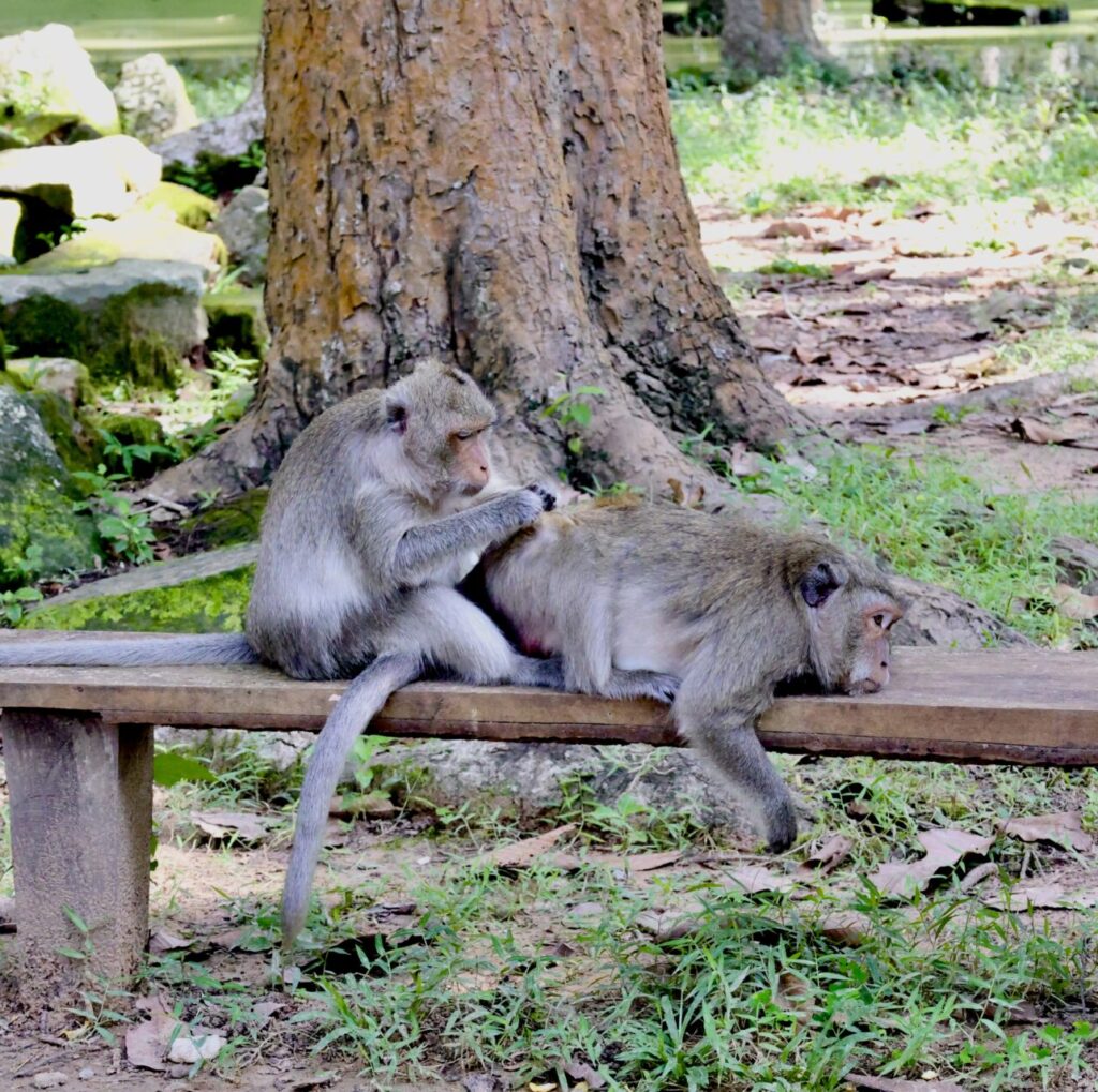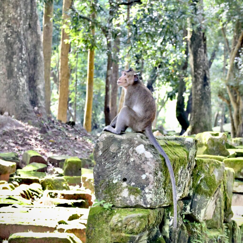 Les macaques crabiers, les rôdeurs d’Angkor Thom.