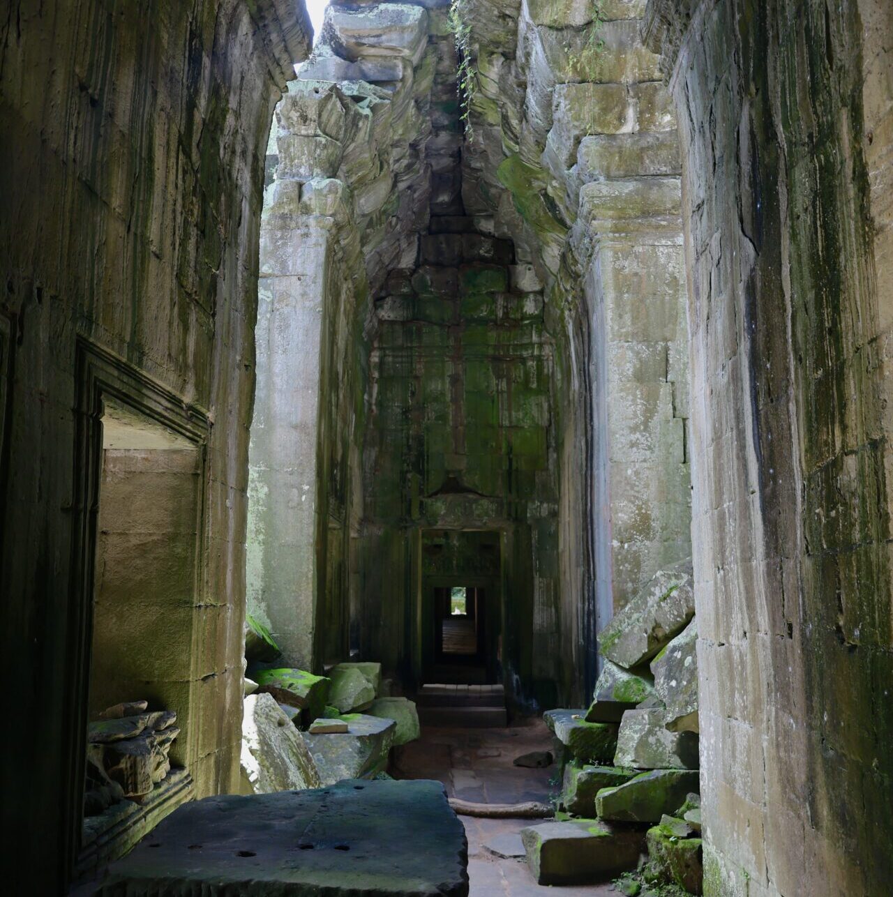 Contrairement à Angkor Wat et ses grands jardins ensoleillés, Ta Prohm est un temple envahi par la végétation. Ses bâtisses pour la plupart en ruines ou incomplètes sont maintenues en place grâce aux racines d’immenses arbres qui les maintiennent à l’ombre de leur plafond végétal, autorisant de ce fait la présence de mousse sur les pierres. Lorsque l’on s’y promène, on peut s’imaginer la fascination et la stupeur des premiers explorateurs qui découvrirent les vestiges de cette civilisation oubliée. Ta Prohm est un enchaînement de galeries à moitié effondrées, de cours jonchées de rochers autrefois joliment gravés et de pagodes millénaires similaires à celles de Wat Banan à Battambang qui fait rêver les visiteurs et inspire les archéologues et explorateurs.