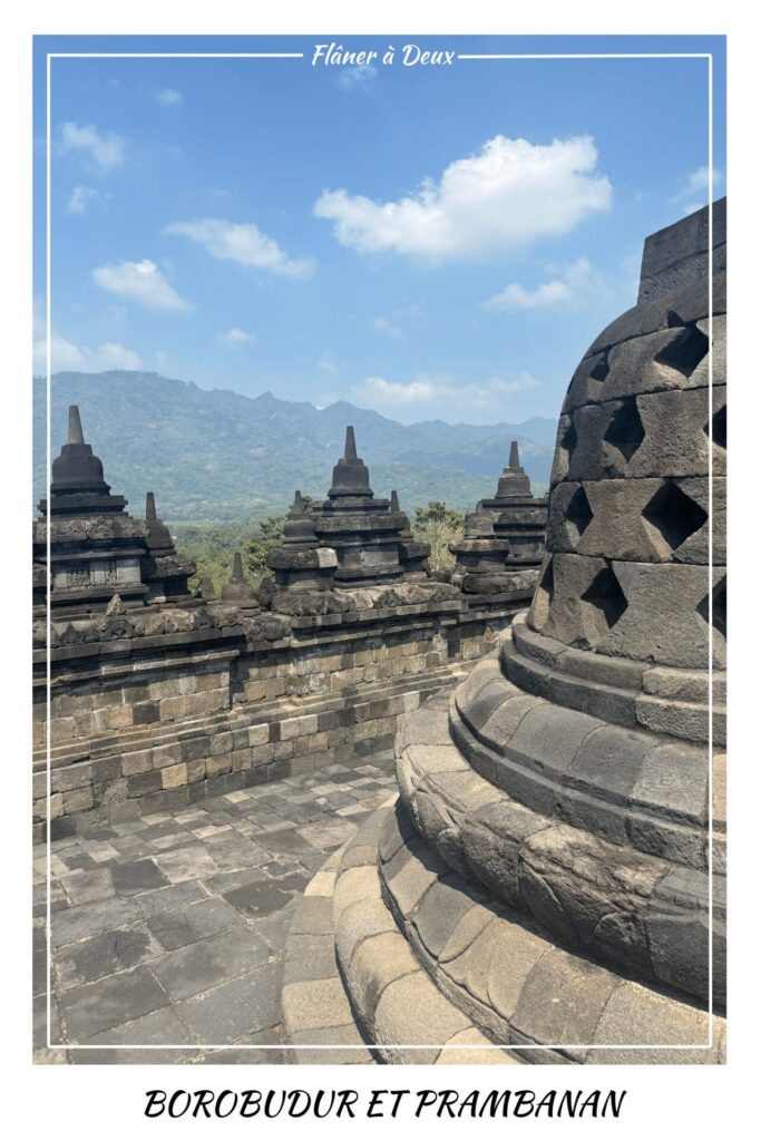 Nous y avons passé deux nuits et une seule journée sur place, pour visiter donc Borobudur et Prambanan, et cela nous a semblé suffisant. Si tu veux voir un peu plus les alentours de la ville, tu peux y passer un jour de plus mais si tu n’as prévu de voir que les fameux temples, une journée entière sur place fait largement l’affaire à condition de ne pas emprunter les transports en commun, autrement ça risque de faire short.