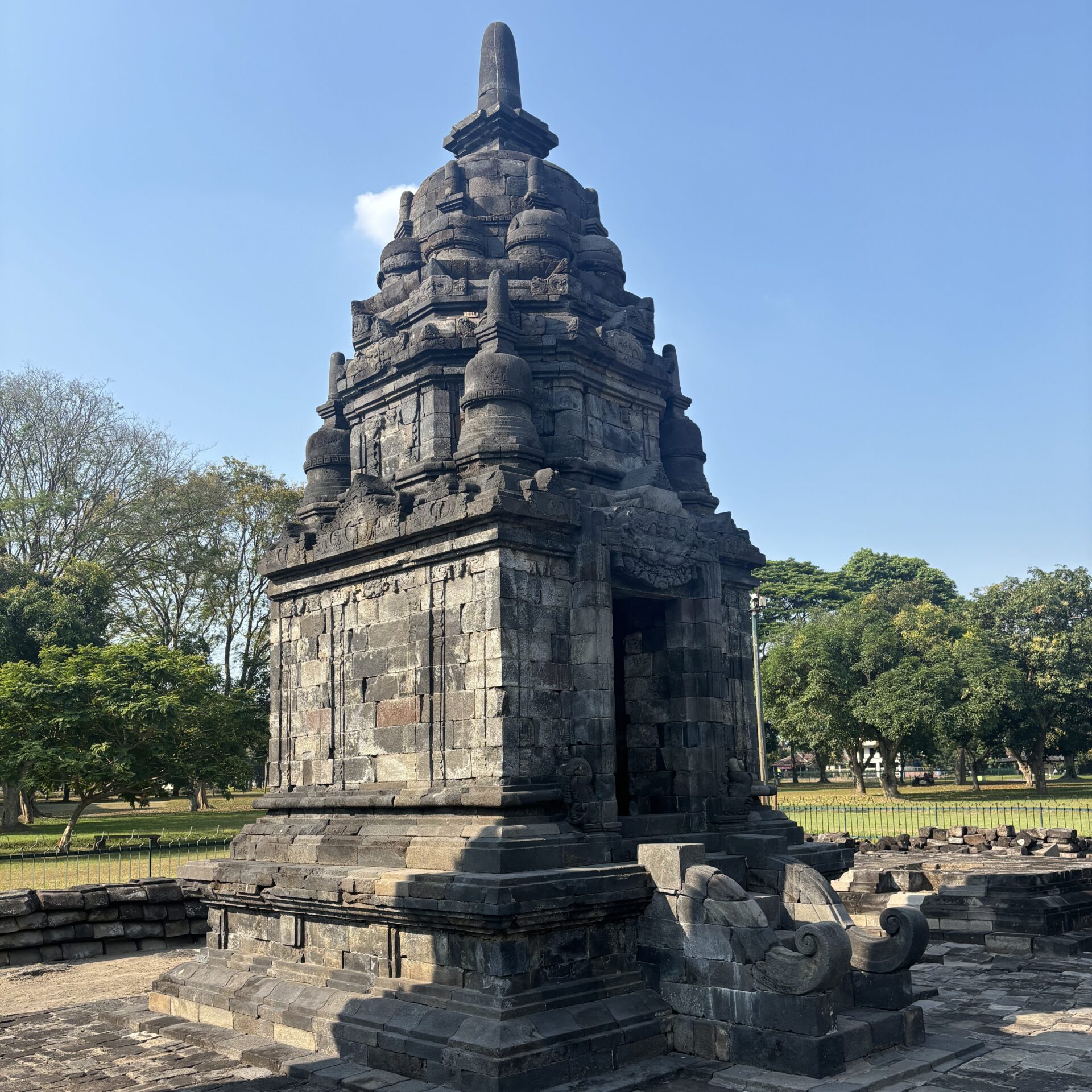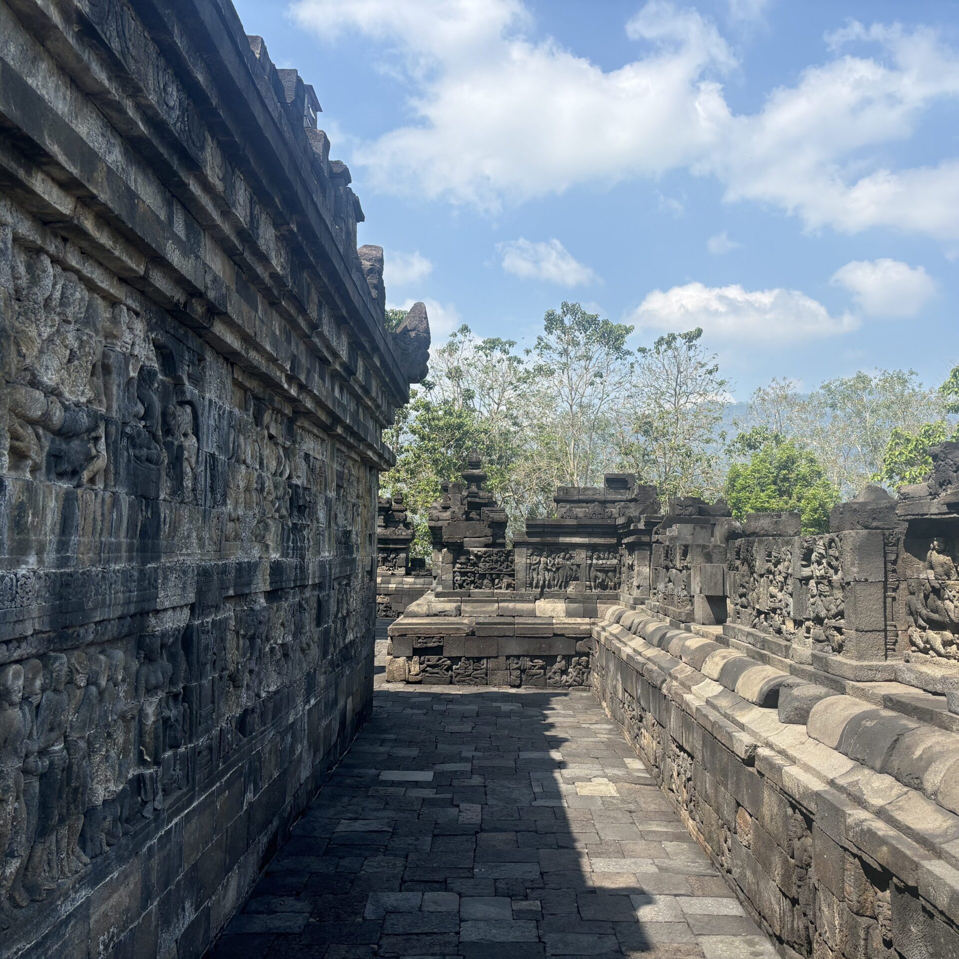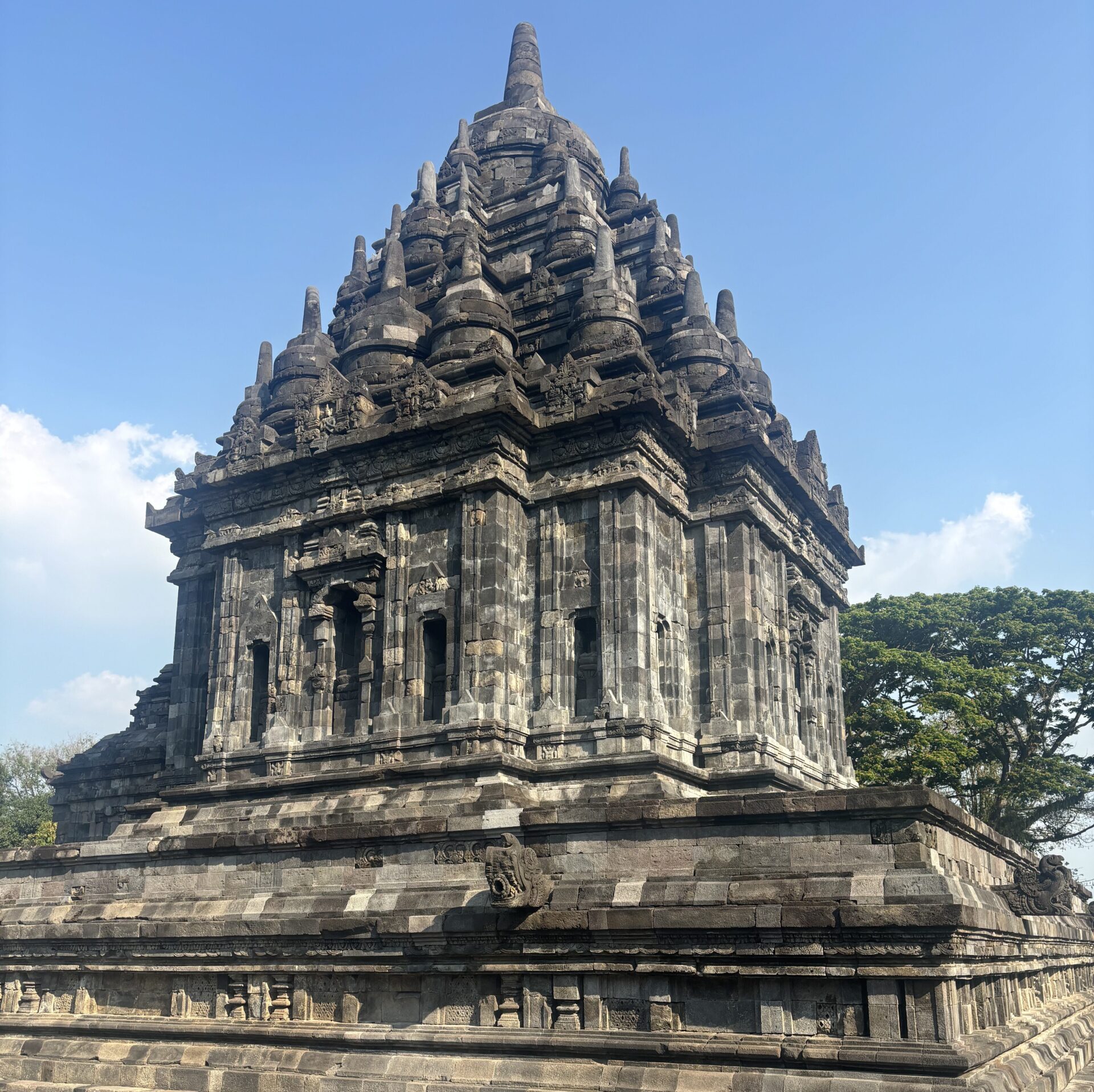 Ce magnifique temple bouddhiste se trouve à l’autre bout du parc de Prambanan, ce qui décourage la plupart des visiteurs de s’y rendre. Pourtant, il est en plutôt bon état et tu peux l’explorer de fond en comble en admirant gravures et stupas en pierre volcanique. Ce temple fut notre coup de cœur, et il serait vraiment dommage de visiter Prambanan sans y faire un détour 😉.