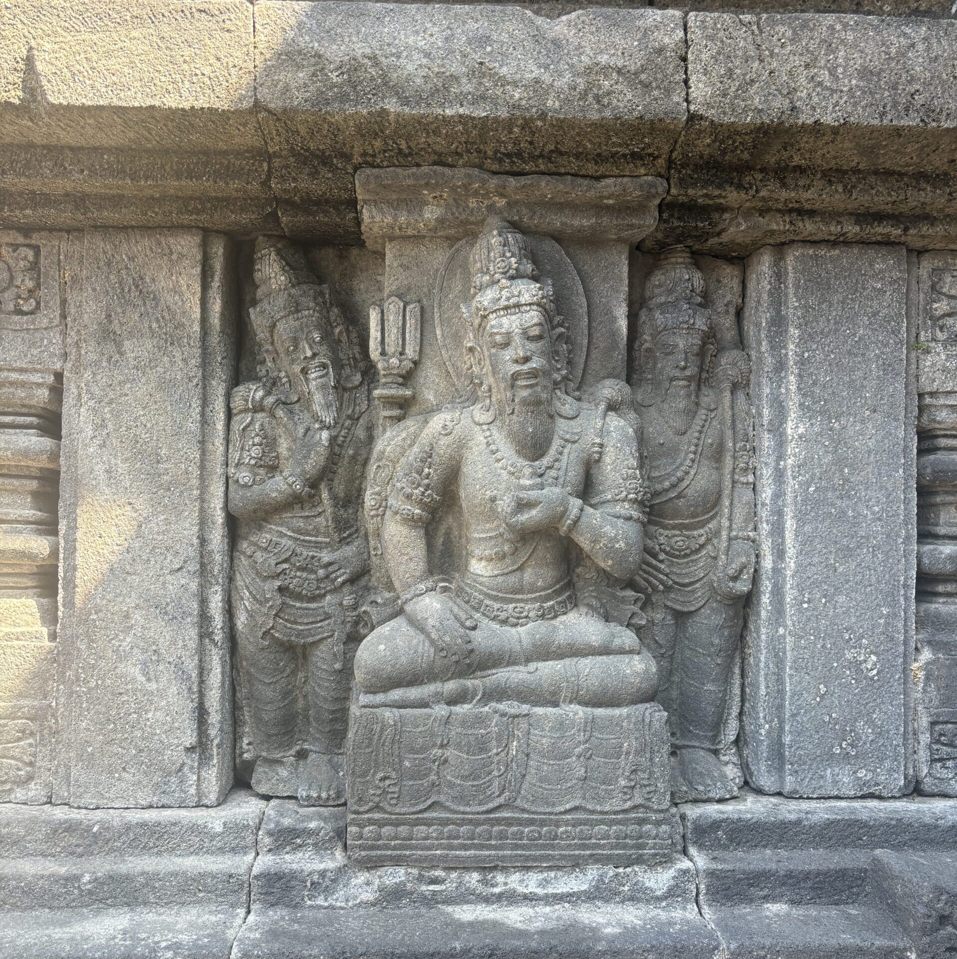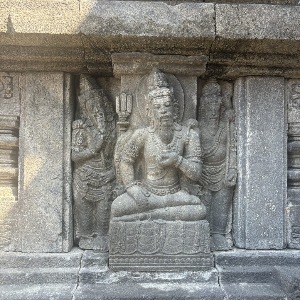 Tous les temples qui composent le complexe de Prambanan, ainsi que la majorité des édifices religieux de la région (Borobudur compris) sont bâtis dans une pierre sombre qui provient directement du volcan Merapi, l’un des plus actifs d’Indonésie. Mais le plus dingue dans cette histoire, c’est qu’ils ont été construits sans l’utilisation de ciment ou de mortier ! Les blocs de pierre sont imbriqués les uns dans les autres comme des Legos, une véritable prouesse architecturale pour l’époque.