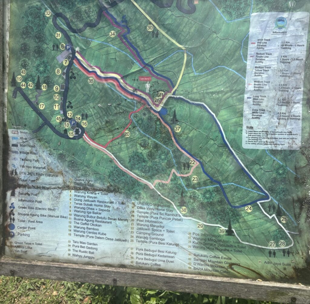 Nos conseils : Si tu veux vraiment explorer les rizières de long en large, on te conseille d’emprunter l’extra long track (le circuit blanc) qui te permet de faire un grand tour des rizières et de profiter à fond de l’ambiance, très loin de la plupart des visiteurs qui se cantonnent au short track.