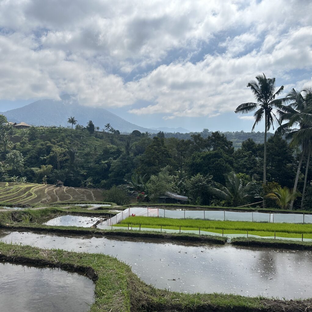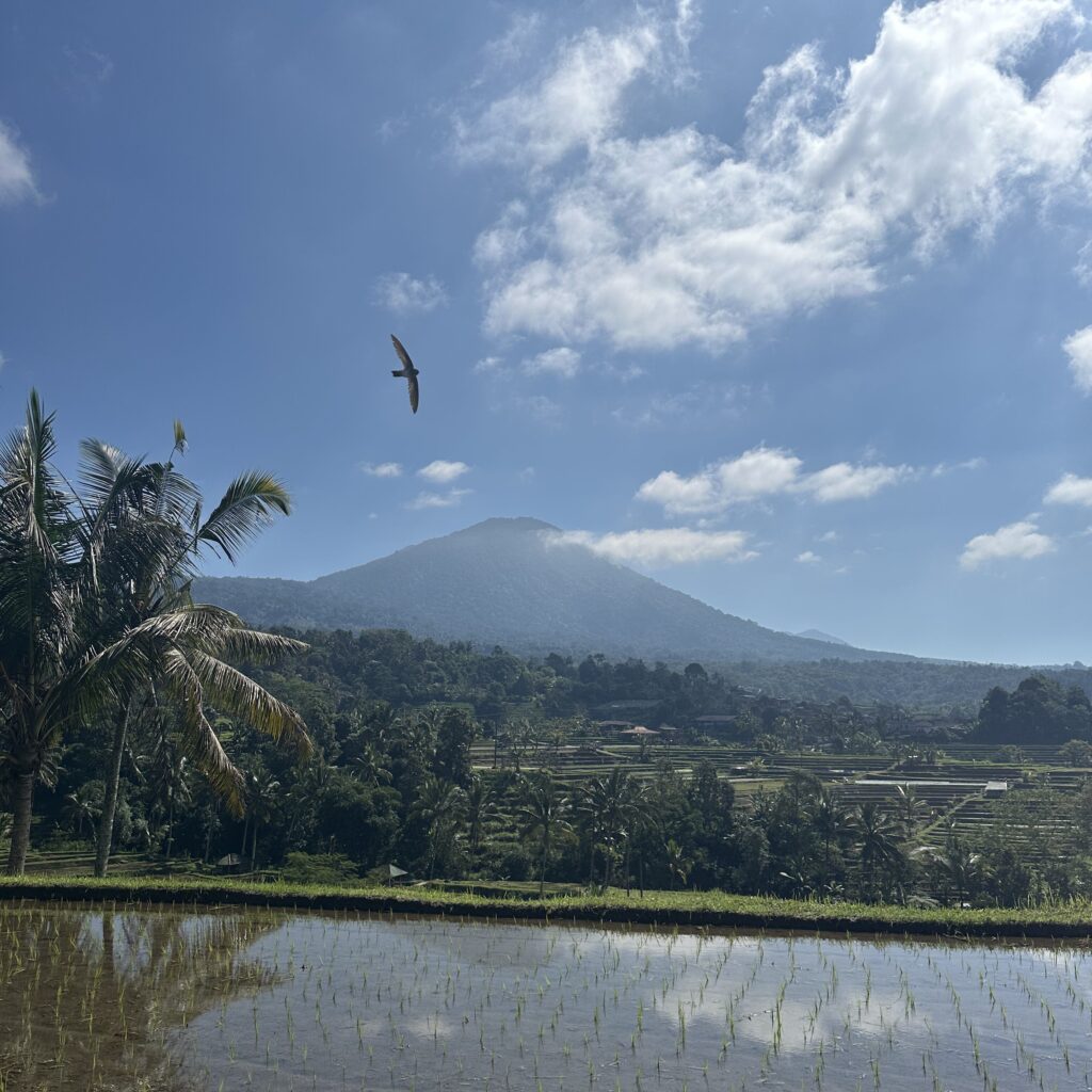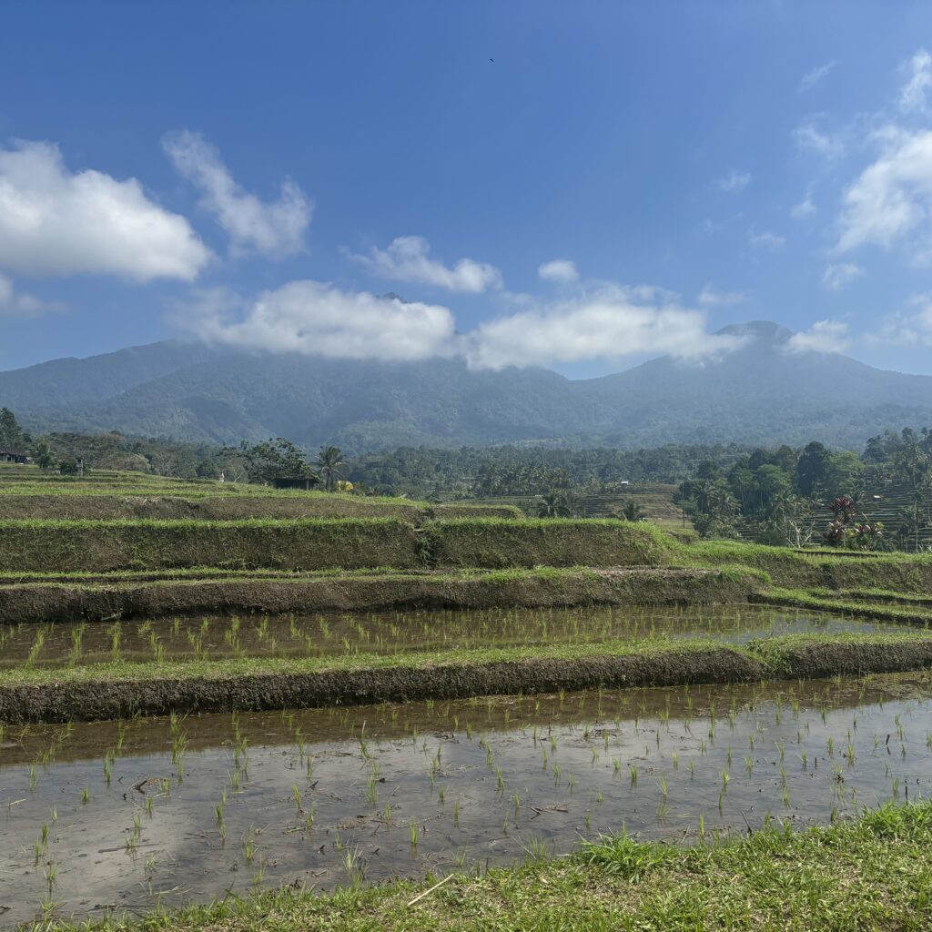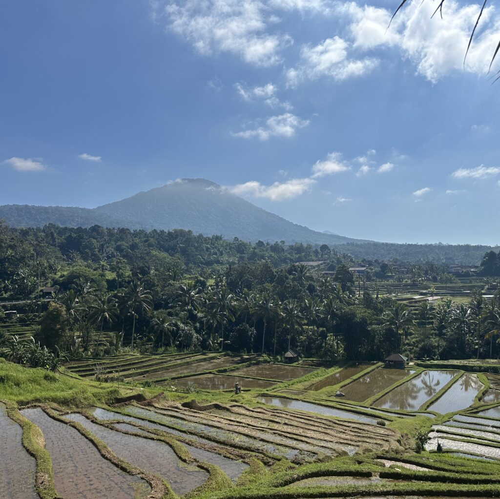 Quand y aller : les rizières sont très vastes, on ne s’y sent pas oppressé par le monde. Il n’y a pas de problème de ce côté-là. En revanche, le ciel a tendance à se couvrir l’après-midi, cachant ainsi le Mont Batukaru et les sommets alentours dans les nuages et recouvrant d’une légère brume les rizières. C’est une ambiance différente, mais si tu veux apercevoir les montagnes qui rajoutent une dimension encore plus saisissante au paysage, viens dans la matinée, de préférence avant midi.