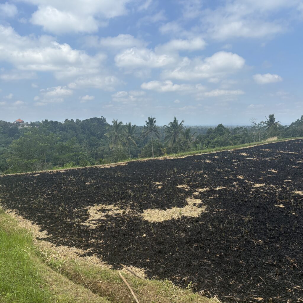 Une fois la récolte passée, les parcelles sont vidées de leur eau puis brûlées pour constituer un engrais favorable à la croissance de la génération suivante. Pendant ta promenade, tu peux en apercevoir les colonnes de fumée.