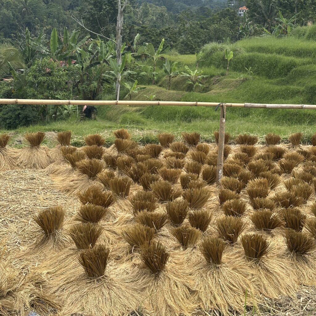 Les pousses de riz récoltées puis séchées.