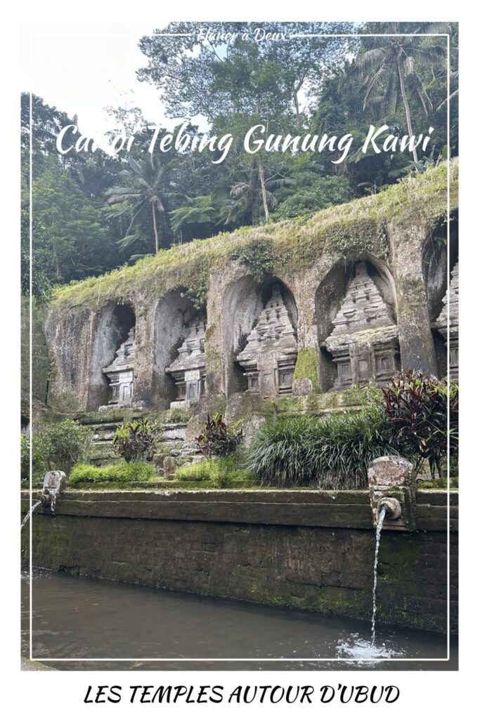 Les sanctuaires des rois (en haut), un espace de prière (en bas), la beauté du temple Gunung Kawi (à droite)