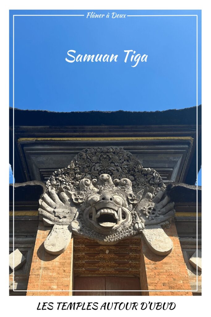 S’y rendre : Situé dans le village de Bedulu, Pura Samuan Tiga se trouve à 20-30 minutes d’Ubud en taxi ou scooter, en fonction du trafic. Tu peux cumuler la visite avec celles de Yeh Pulu et Goa Gajah qui se trouvent à moins de 20 minutes à pied les uns des autres.