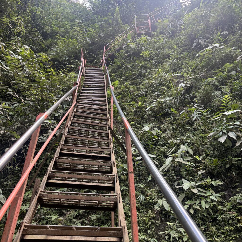 En descendant jusqu’en bas de la cascade, tu risques de te retrouver au milieu de la foule, surtout si tu te rapproches jusqu’au bassin dans lequel se jettent les cascades. C’est malheureusement le problème des lieux touristiques à Java : leur surfréquentation. Heureusement, on a une solution pour toi 😉. Au lieu de t’agglutiner comme tous les visiteurs au pied de la cascade ou sur la plateforme d’observation, emprunte plutôt un escalier qui te conduira en face de cette dernière, et duquel tu auras un encore plus beau panorama sur la cascade (voir les photos ci-dessous). Par contre, autant qu’on te prévienne : les marches sont étroites, bancales et à flanc de falaise, donc il ne vaut mieux pas avoir le vertige !
