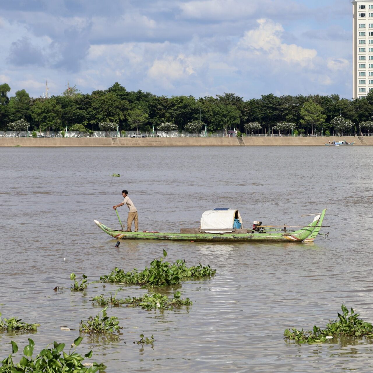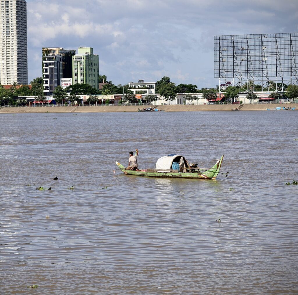 Il fait souvent chaud à Phnom Penh, alors un peu de fraîcheur au bord d’une rivière ne fait jamais de mal, surtout quand cette rivière est le légendaire Mékong, qui part des montagnes du Tibet en Chine pour rejoindre la mer dans le sud du Vietnam en traversant au passage le Laos, la Thaïlande et le Cambodge. La promenade le long de ses berges du côté du centre historique est sympa. Tu pourras y voir de longues barques chargées de marchandises serpenter entre les algues remontant à la surface.