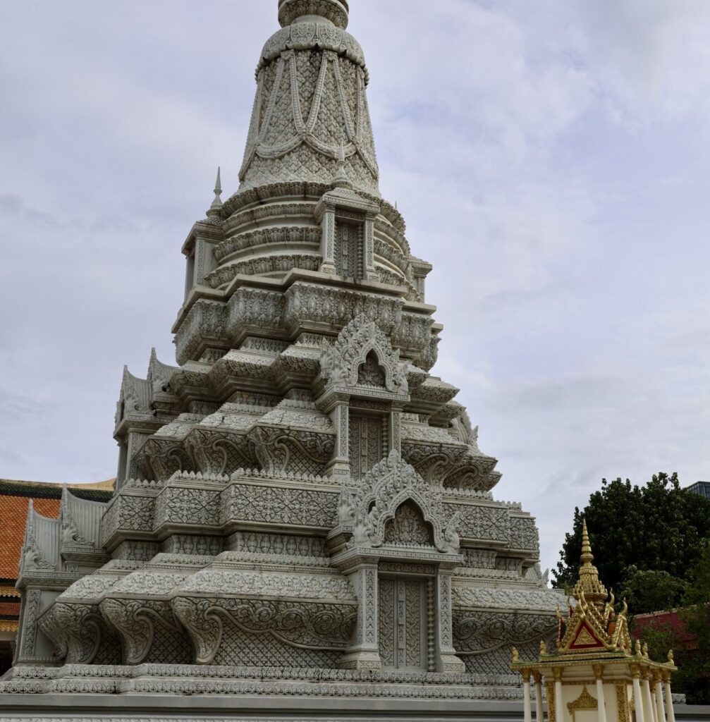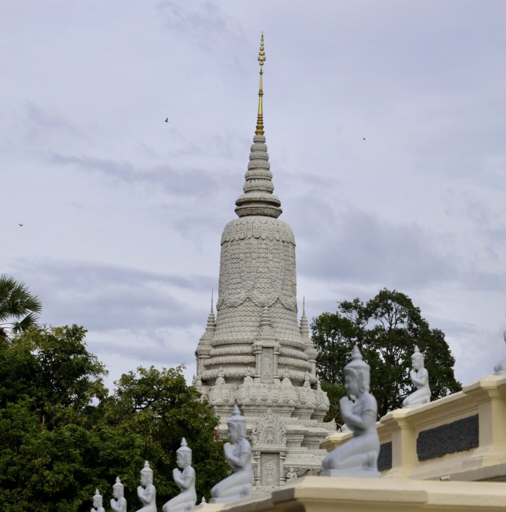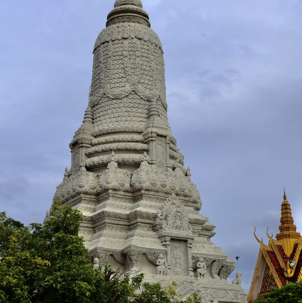 Si tu viens à Phnom Penh, tu ne peux pas manquer cet incontournable de la ville. Construit en 1866 sous le règne du roi Norodom, lors du déplacement de la capitale royale de Oudong à Phnom Penh, il est aujourd’hui encore la résidence principale de la famille royale, dont les quartiers sont bien évidemment fermés au public. Ses nombreuses pagodes aux toits dorés et aux ornements typiques de l’architecture khmère moderne s’enchaînent dans des jardins parfois richement décorés, parfois laissés sous l’apparence de vastes espaces pavés. On y trouve également la célèbre Pagode d’Argent (Silver Pagoda), une pagode de couleur gris pâle finement gravée d’un grand nombre de bas-reliefs.