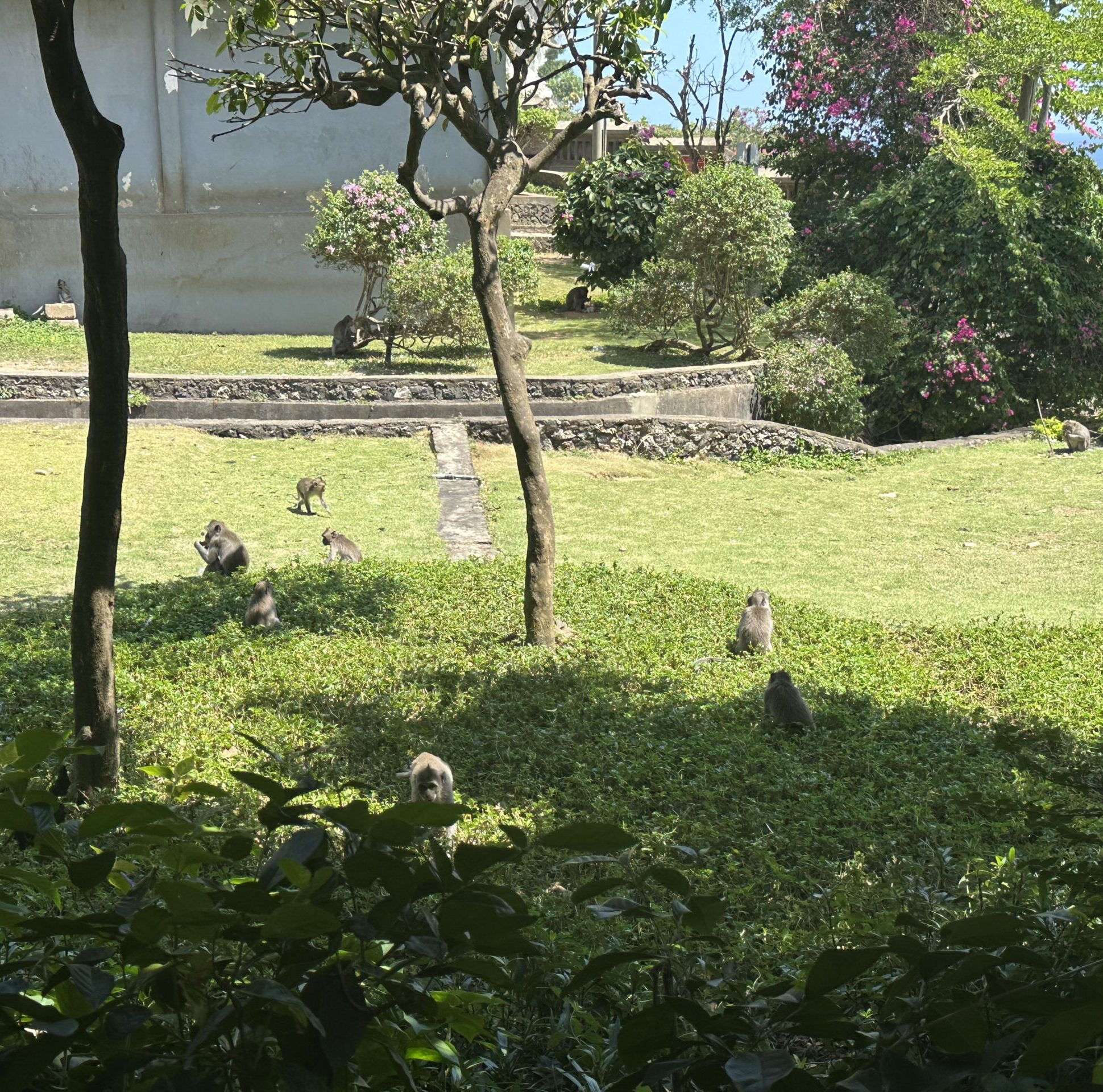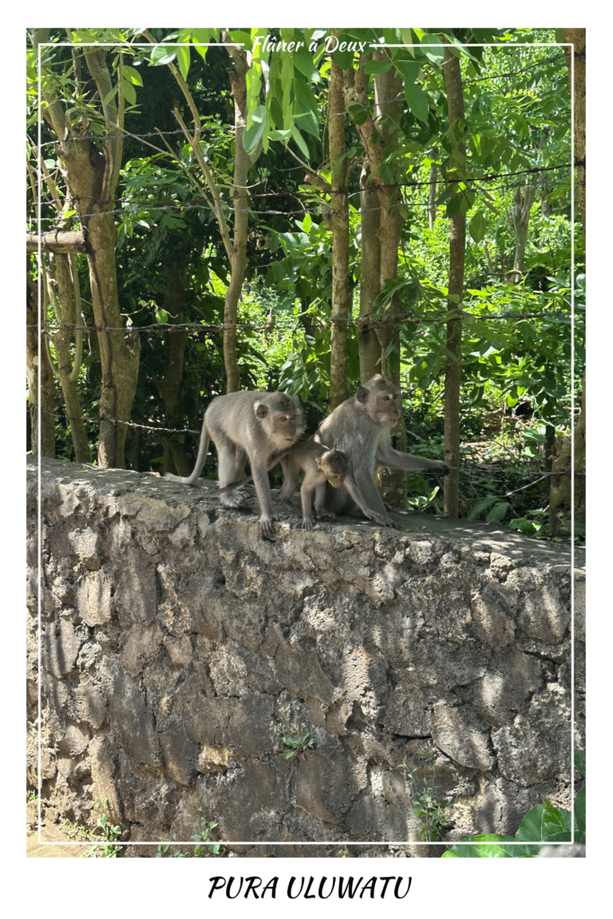 Les fameux singes d’Uluwatu, connus sur les réseaux sociaux pour leur côté rusé et voleur, sont une véritable attraction ici. Mais méfies-toi : ils se déplacent en bandes et n’hésitent pas à attaquer les touristes pour leur dérober leurs effets personnels et leur échanger par la suite contre une rançon alimentaire… Malins, ces macaques ! Pour éviter ce genre de situation rarement agréable, on te conseille de ne pas trop t’en approcher, de garder tes effets personnels rangés dans un sac ou dans une poche fermée et surtout, de ne pas amener de nourriture, même emballée. On en a vu plus d’un ouvrir un paquet de gâteaux sans la moindre difficulté ! Mis à part ce côté chapardeur, ces singes ajoutent un petit quelque chose à ce temple déjà unique 😊.