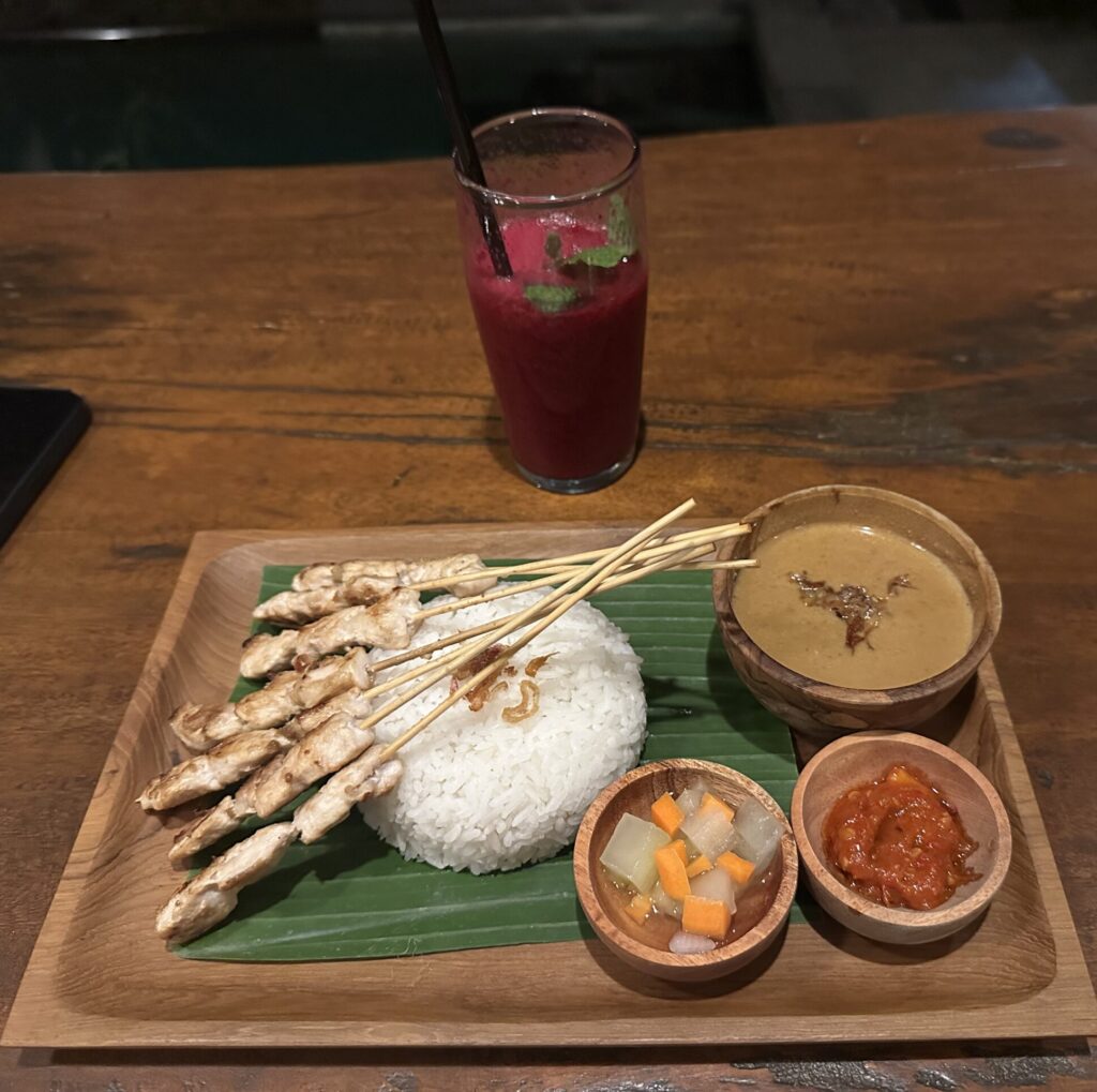 Un warung un peu chic, avec des tables donnant sur une piscine dans une cour intérieure. Les plats sont excellents et tournent autour de 45,000 IDR, de quoi se faire plaisir ! On te conseille d’ailleurs leur chicken satay qui est juste succulent. L’accès se fait par une petite ruelle perpendiculaire à la rue principale d’Ubud, et il n’y a presque personne !