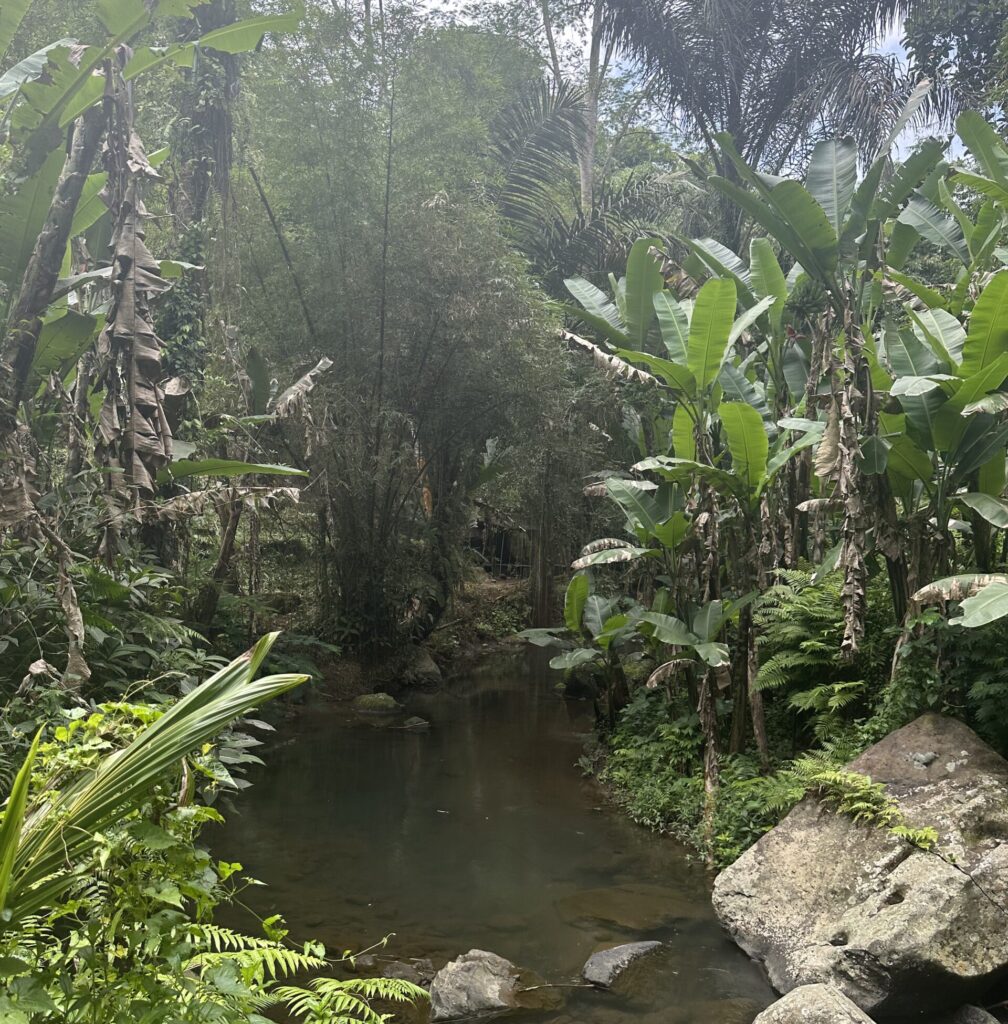 Au départ du sentier, tu peux aussi bifurquer sur la gauche et descendre jusqu’à un spot secret : la Campuhan River, qui est en réalité la jonction entre deux rivières de couleur très différente qui symbolise l’union entre la masculinité et la féminité.